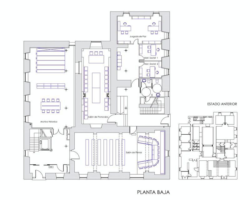 Rehabilitación integral de la Casa Consistorial y de la Iglesia de San Martín del siglo XIII oculta en su interior. La rehabilitación consistió en conjugar la funcionalidad que se demanda a un edificio con este uso mostrando al mismo tiempo toda su evolución histórica a través de la visualización de los elementos constructivos que lo componen.