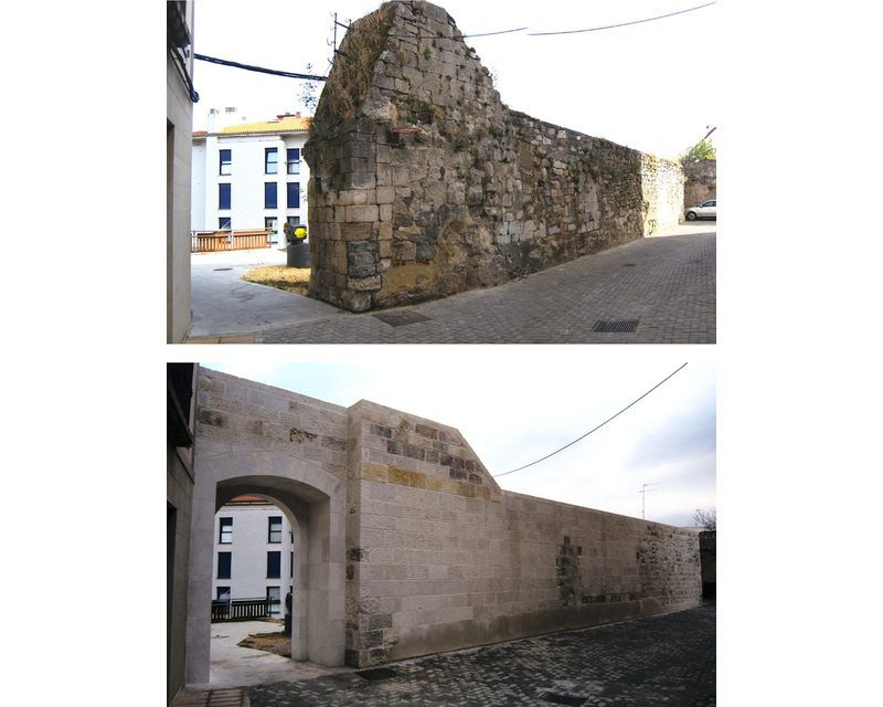 Restauración del lienzo de muralla en su lado sudeste en una longitud de 70 m con una media de altura de 4,30 m en su cara exterior y 26 metros a su cara interior.